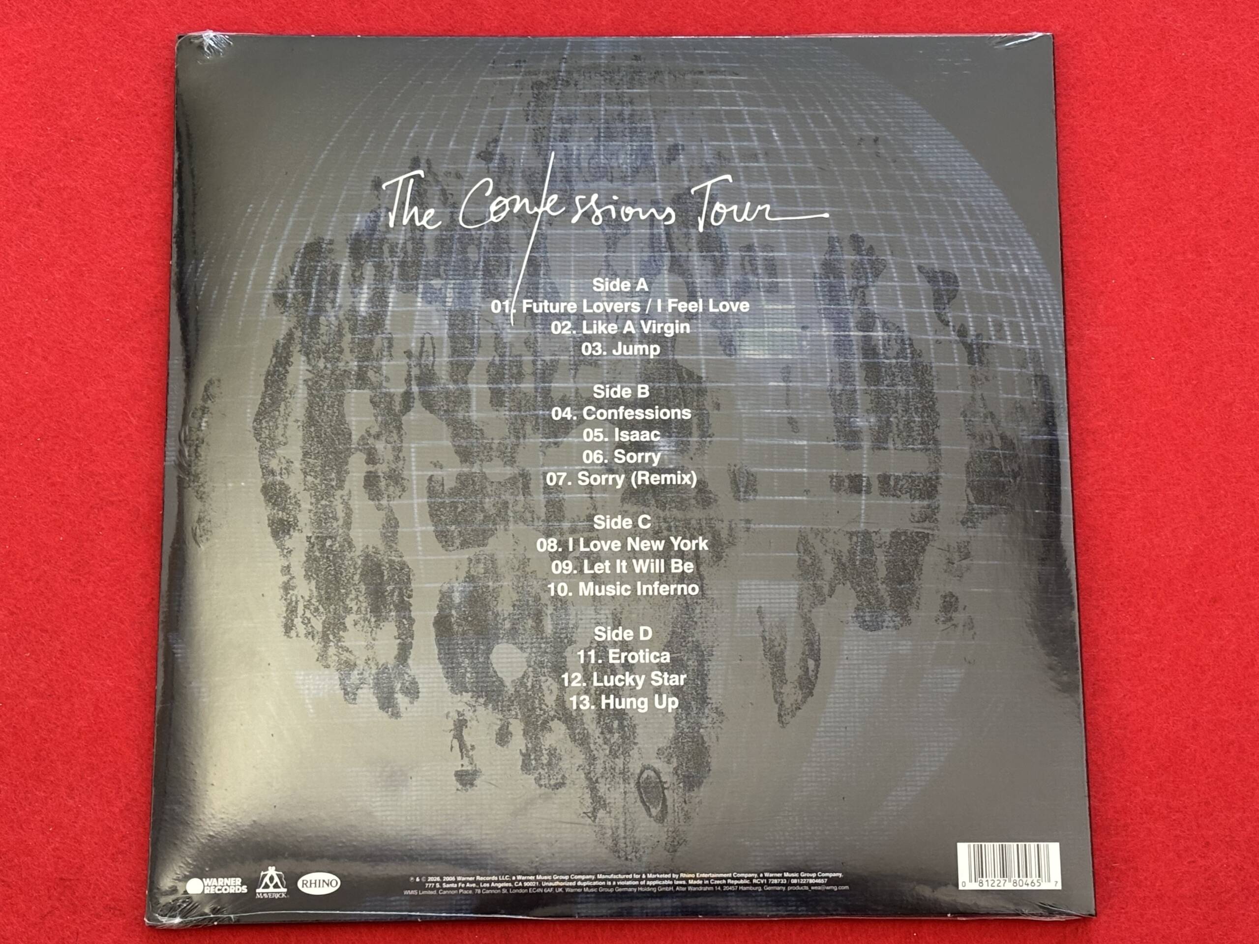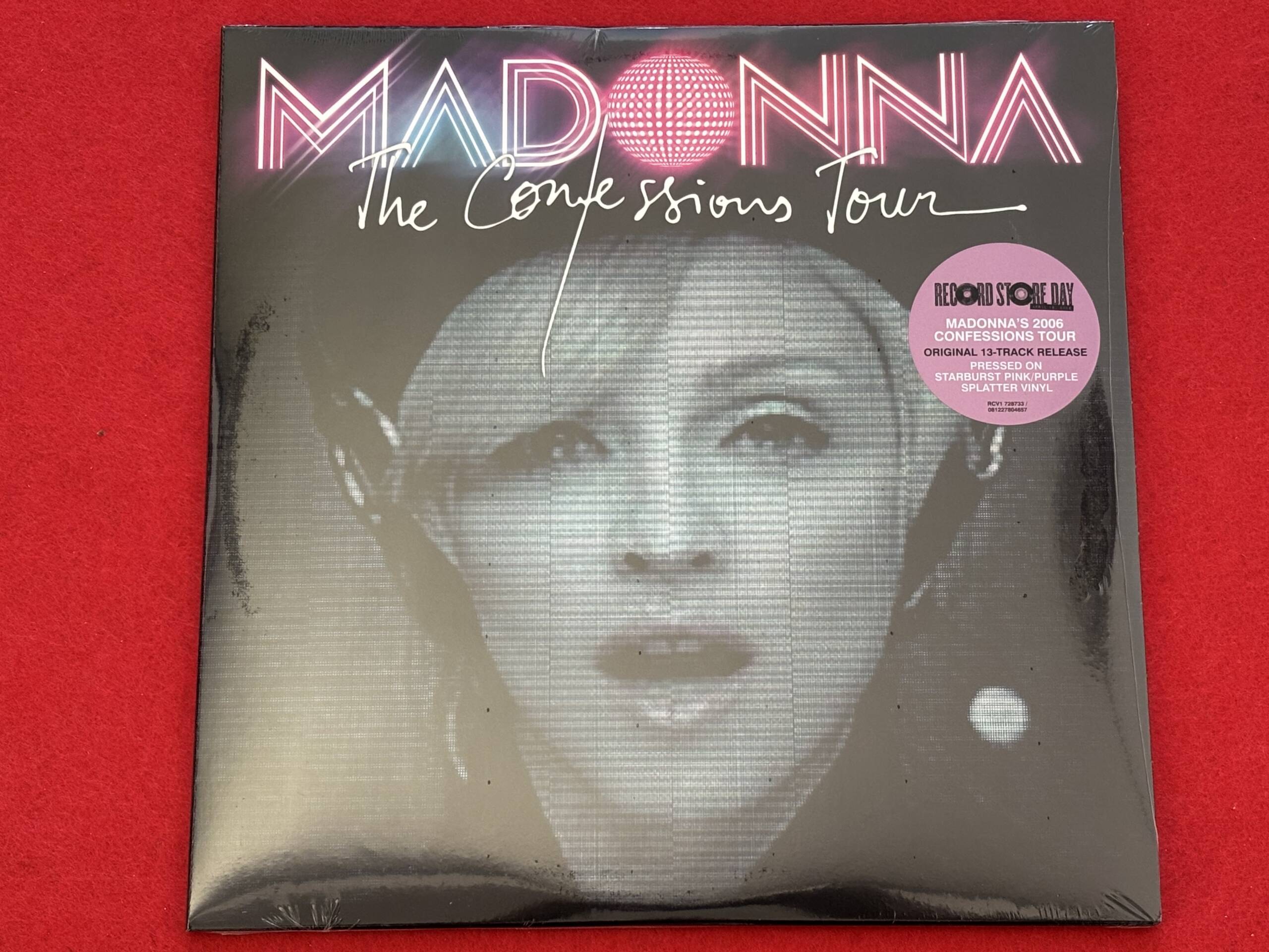 The Confessions Tour es un álbum en directo de Madonna que incluye actuaciones de su gira de 2006, «Confessions On A Dancefloor». Publicado originalmente en CD en 2007, este álbum de 13 temas se lanzará en vinilo doble con efecto salpicado para el Record Store Day de 2026.